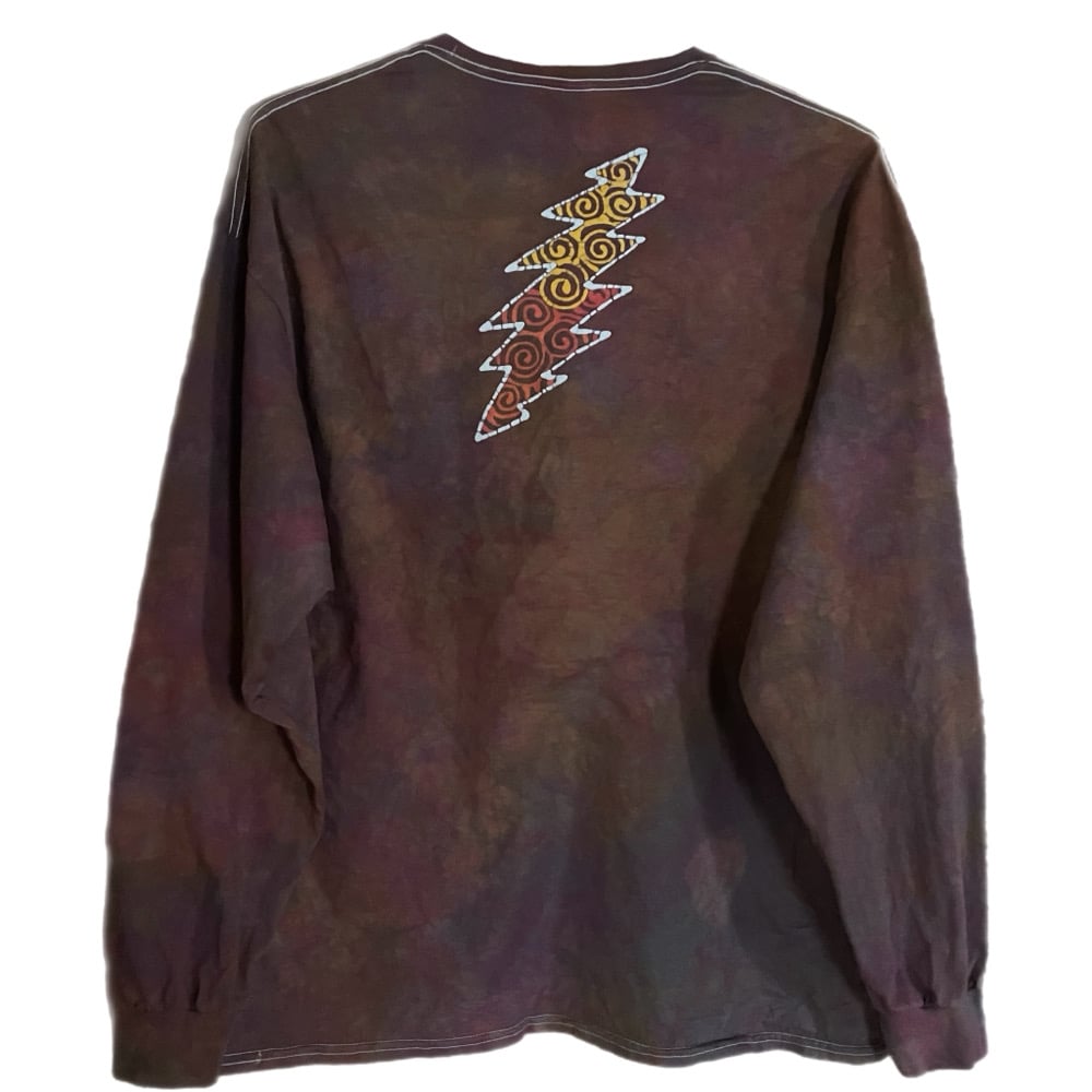I wanted to create a simple long sleeve design that still packed a punch. It features the Grateful Dead palindrome on the front framed by 5 ovals of 3 different colors.