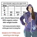 Ladies mid-weight, fleece lined zippy hoodie in organic cotton fabric. This hoodie is super soft and cozy.
