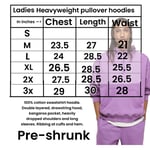 Ladies size SMALL pullover hoodie in thick cotton fabric. Double layered, drawstring hood with grommeted holes, kangaroo pocket. Long sleeves and ribbing at cuffs and hem.
